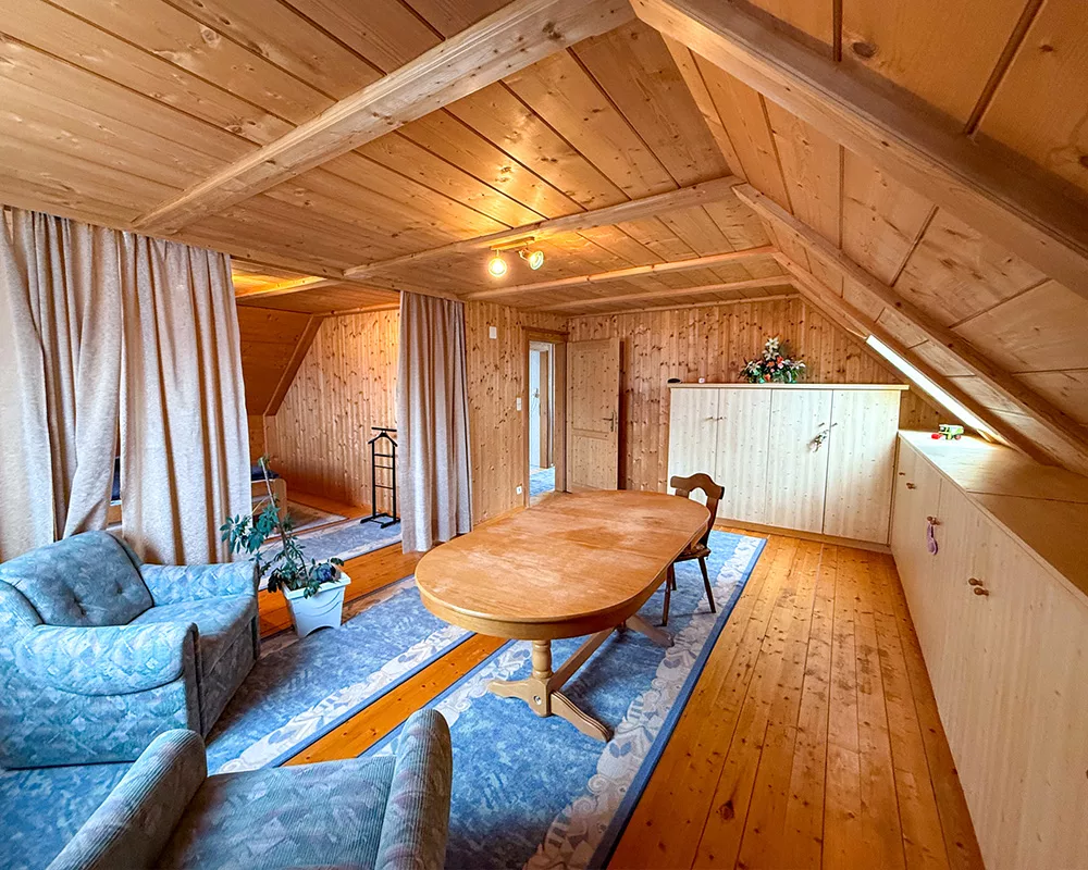 Im Dachgeschoß befinden sich die Schlafräumlichkeiten sowie das Badzimmer mit WC. Das Objekt ist gepflegt und somit bezugsfertig.